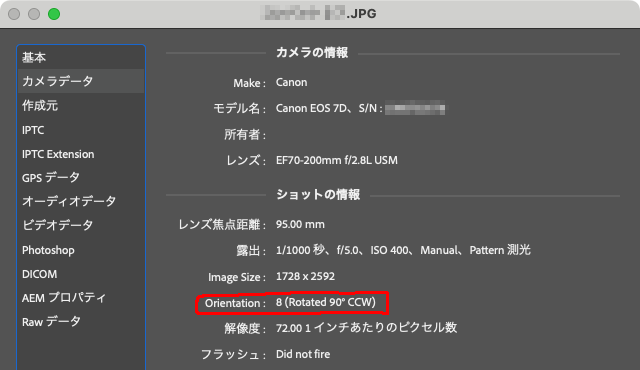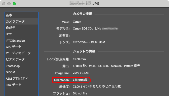 なので、Photoshopで正確にメタデータを確認するためにはこのチェックは常に外しておかないとだめなのかも。