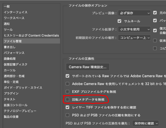 これ、環境設定「回転メタデータを無視」でオフにできるんだけど、