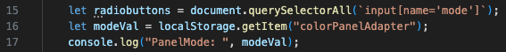 modeVal変数がundefinedのときはラジオボタンの状態を変数に反映するようにしてます。あんまり意味がない気もする。