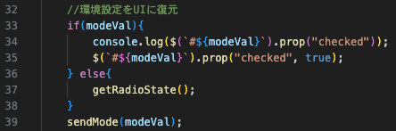 と、最初に取り出したmodeVal変数があればUIのラジオボタンに反映。