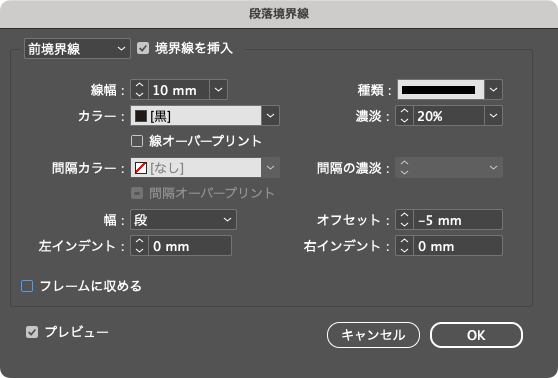 対象セル内の段落に段落境界線(前境界線)を設定しておいてください。