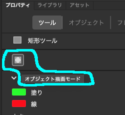 (ちょっと脱線)これはこれでこのほうがいい局面もあるんですが、IllustratorのパスやPhotoshopのシェイプのように塗り&線で1オブジェクトとしたい場合は、ツールバーのカラーのすぐ下にある「オブジェクトの描画」ボタンを押してハイライト。