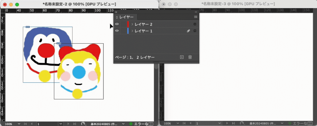 複数レイヤーに絡む選択をした場合、レイヤーの並び順に注意しましょう。
